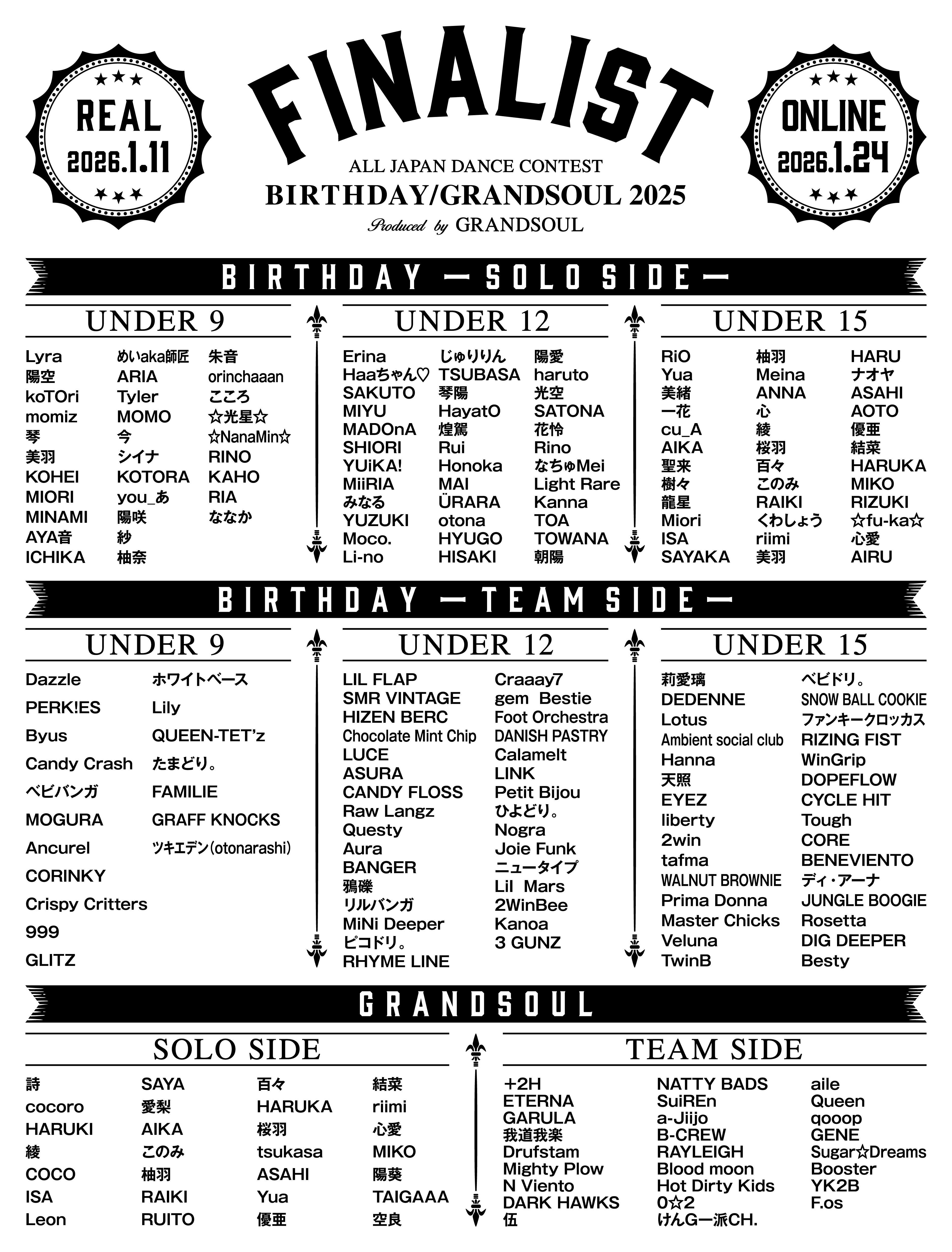 2025年厳しい戦いを勝ち抜いて選ばれた、特別で決して諦めない!!スペシャルなファイナリスト達の名前がプリントされています。(決勝に出場される方のみの掲載となります)